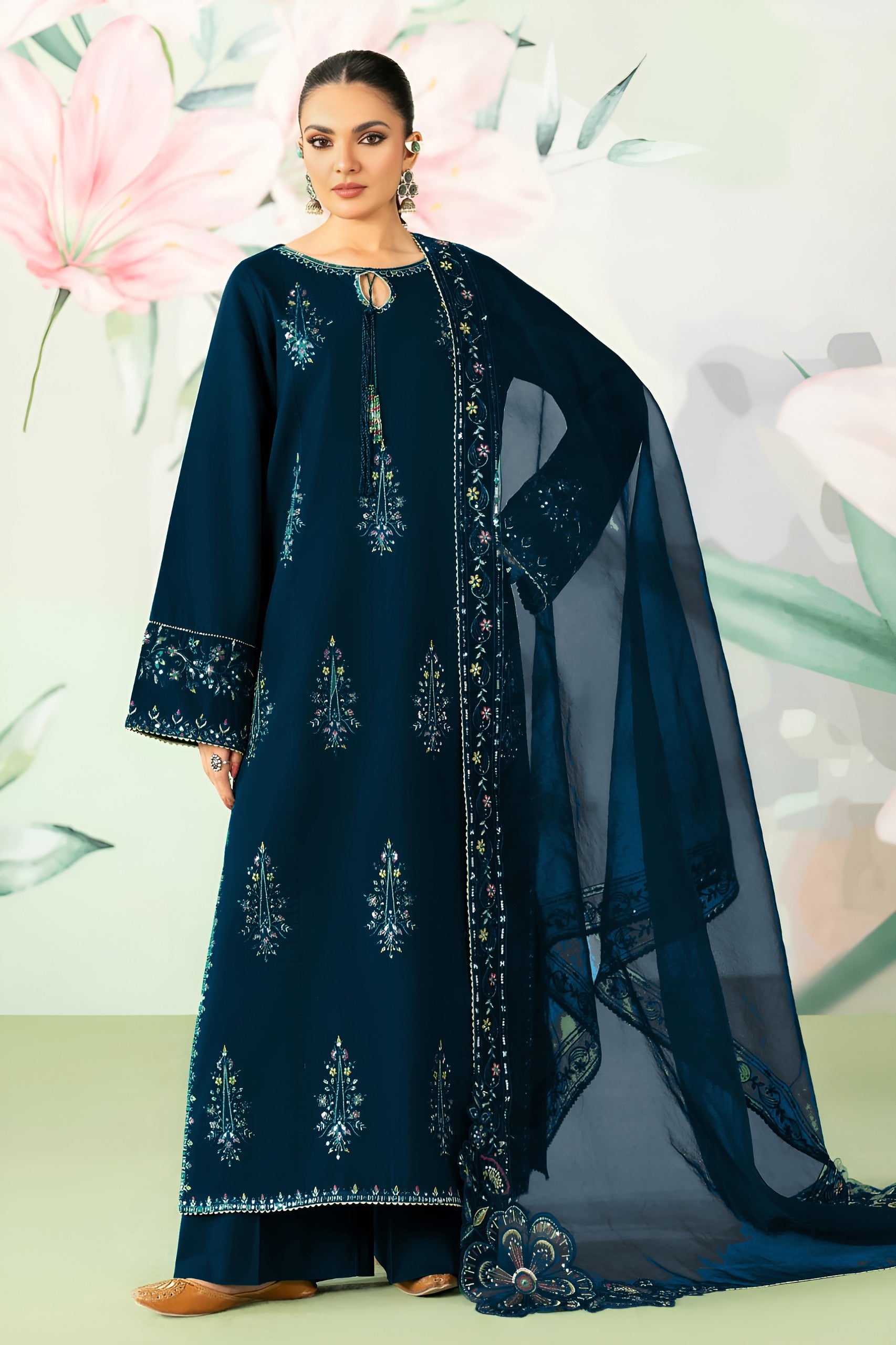• Embroidered Organza Dupatta adding a graceful festive touch